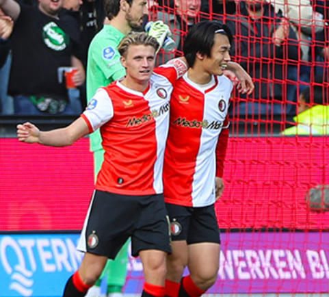 FEYENOORD WINT VAN FC UTRECHT IN AANTREKKELIJKE WEDSTRIJD MET 3-2Feyenoord heeft goede zaken gedaan voor de stand in de competitie. In een aantrekkelijke wedstrijd met voor Feyenoord een zeer goede 1e helft pakte de Rotterdammers de volle buit door FC Utrecht te verslaan. In de 1e helft had Feyenoord al ruim moeten voorstaan met een voortreffelijk spelende Oussama Targhalline als motor. Na 2 x voor te hebben gestaan door goals van Ueda en Steijn maakte FC Utrecht in de 83e minuut weer gelijk. De aanvallende wissel door Cyle Larin vlak naast Ueda te zetten pakte goed uit. Na een mooie combinatie van Feyenoord maakte de wederom goed spelende Ueda de verlossende 3-2 en pakte Feyenoord weer de 3 punten !Foto’s Feyenoord - FC Utrecht